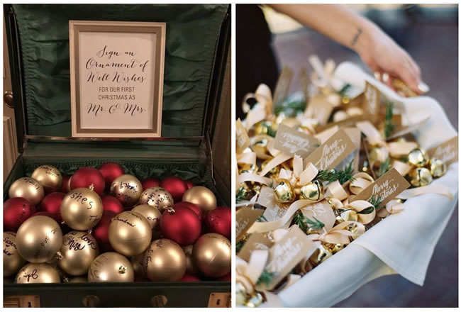 Christmas is a super-sentimental time and a great opportunity to create new traditions: fill an old suitcase or hatbox with baubles and have a permanent marker pen close by. Wedding guests are invited to pen down a wish for the couple, and their names. At the end of the wedding, baubles are packed away safely, ready to be put up on the couple’s first wedding anniversary.