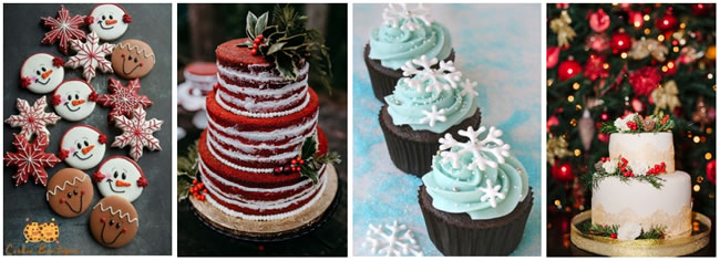 Include cute Christmas themed cookies with your wedding coffee station or add snowflake themed cupcakes to your dessert station. You could even let your wedding cake lean towards the Christmas theme with gorgeous layers of red velvet cake: